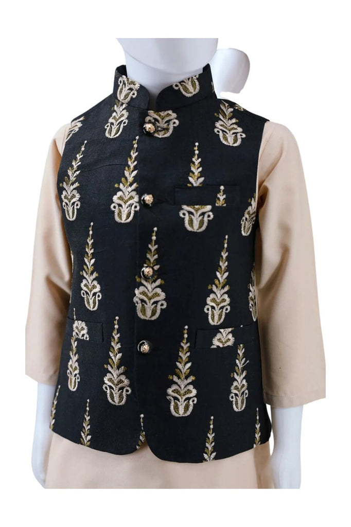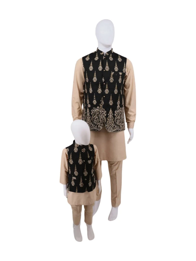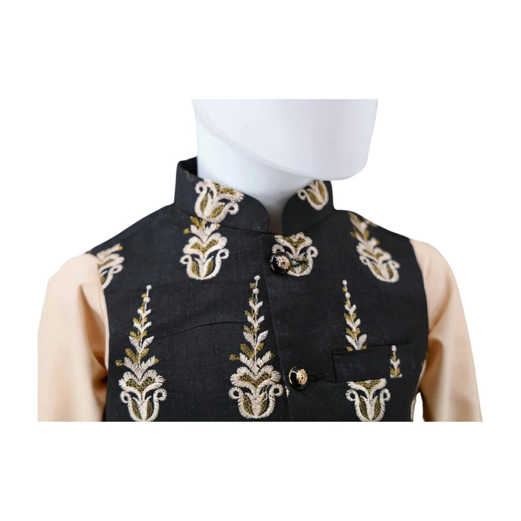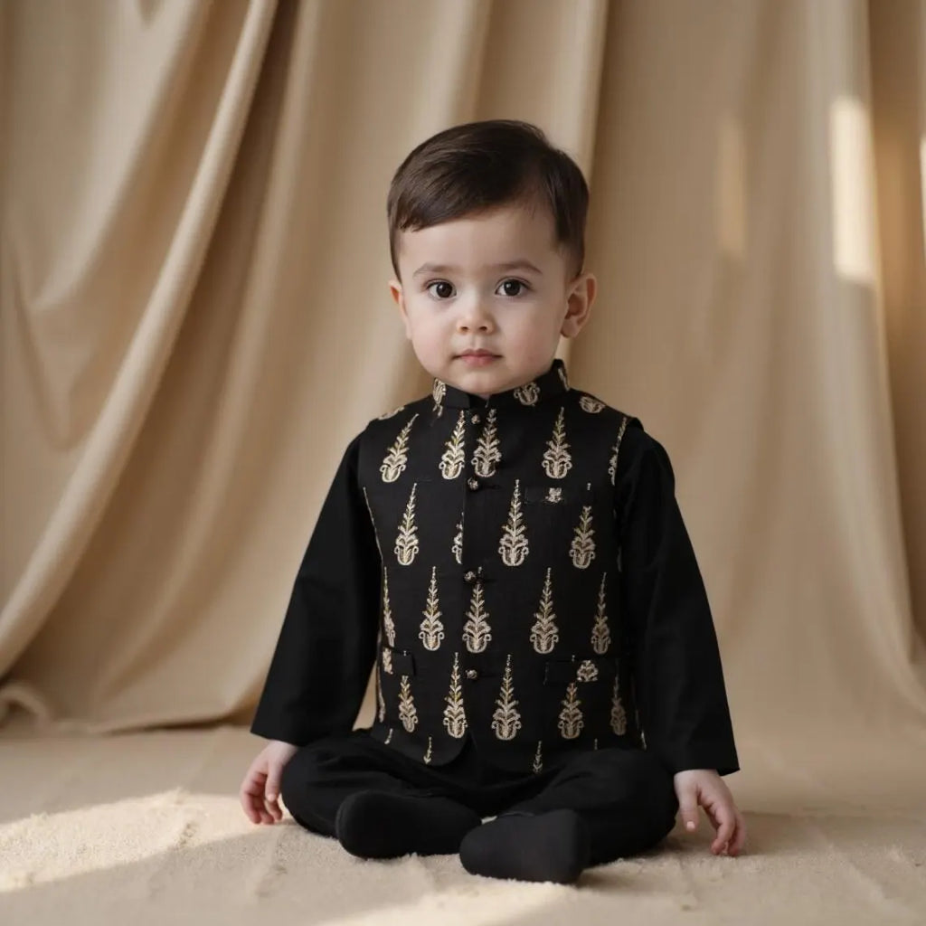 Black and Gold Embroidery Boy Koti and Kurta Set