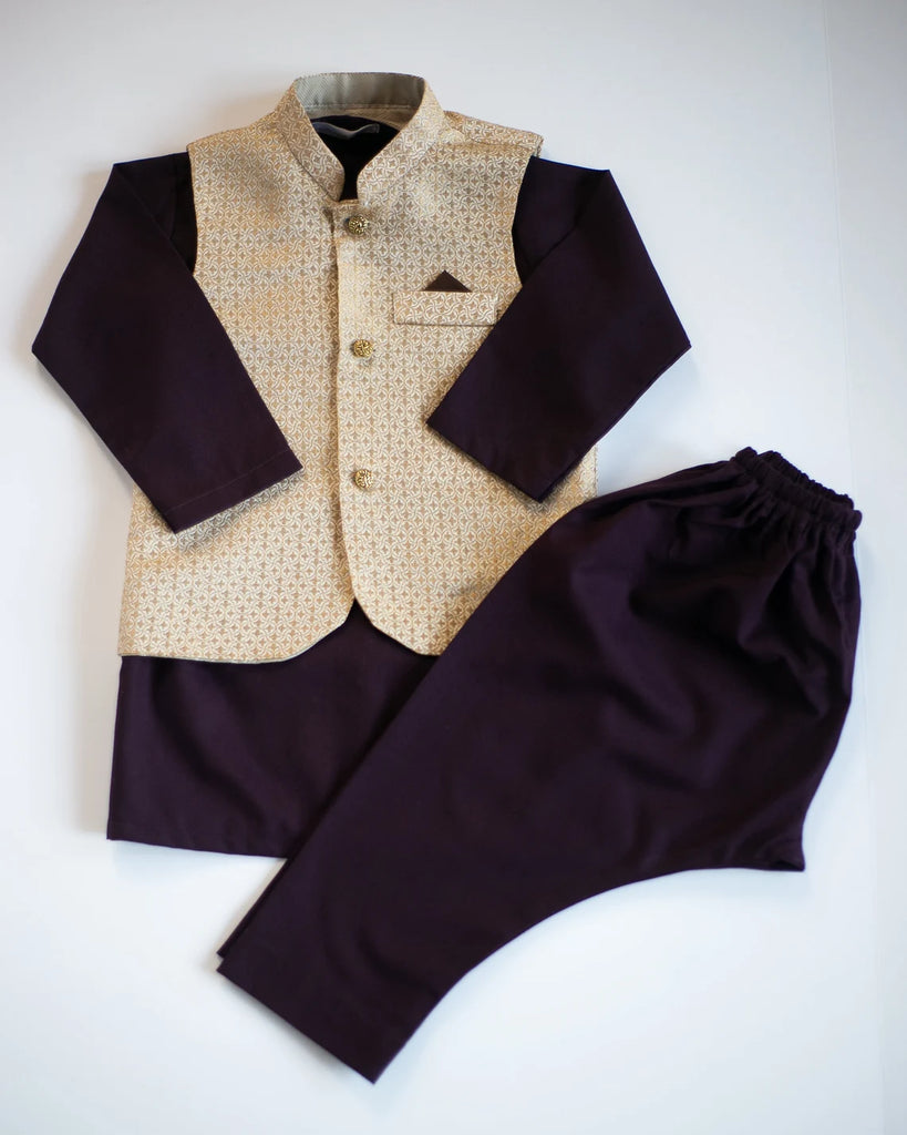 Adorable, made-to-order koti and kurta kameez set for infant, toddler and kid boys!
