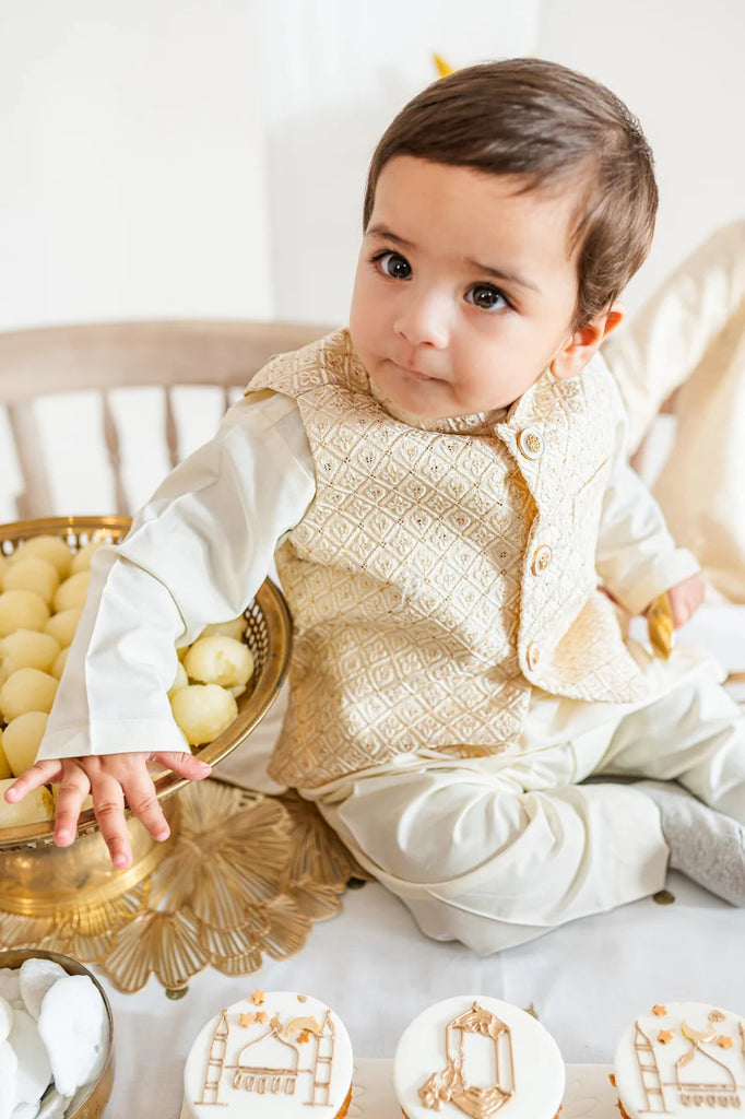Regal Ivory Embroidered Koti for Kids Perfect for any special occasion