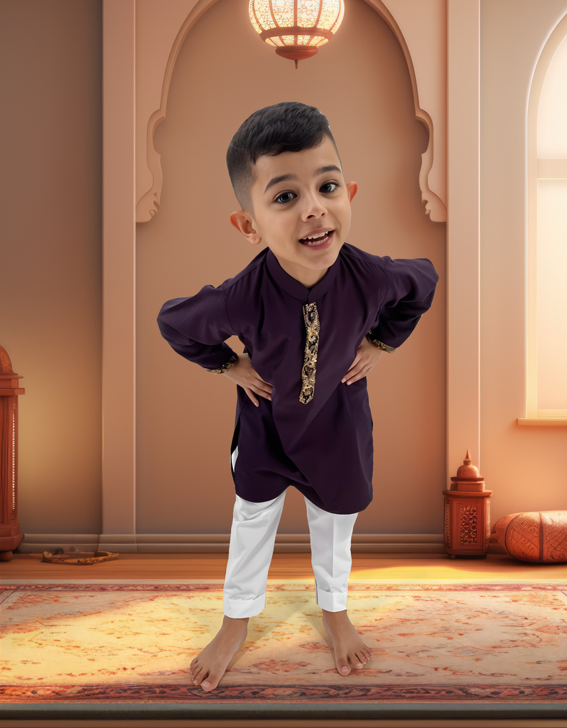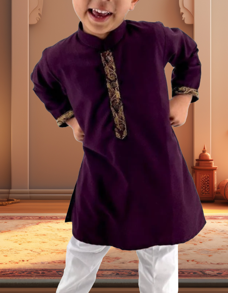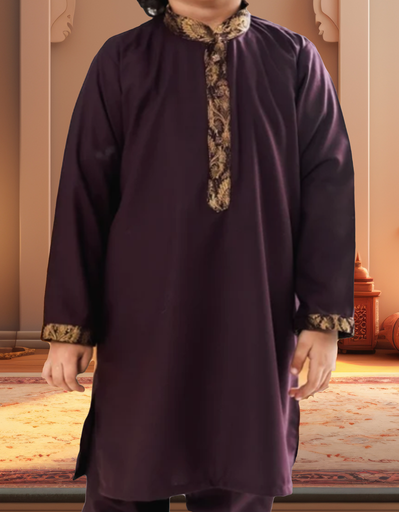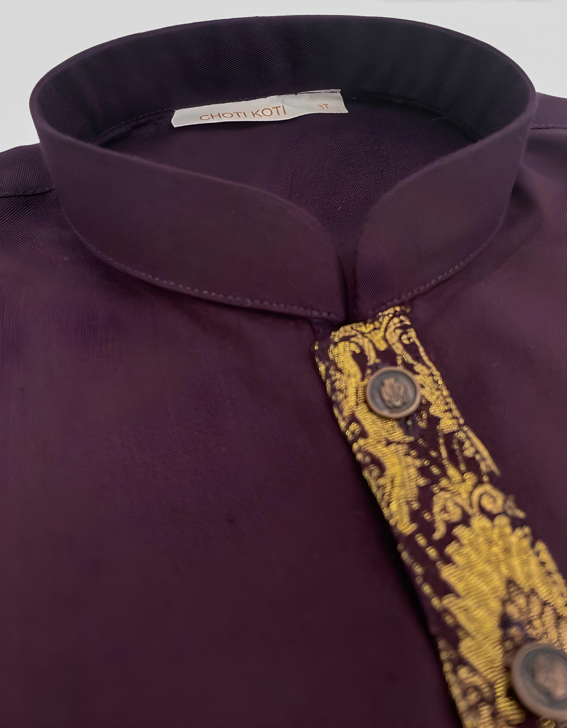 Plum Zari Kurta with Pajama for Kids Perfect for Special Occasions