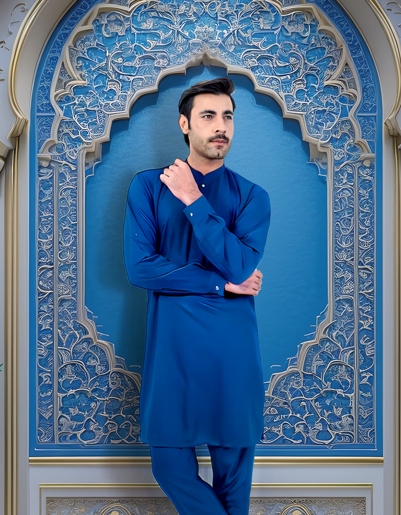 Feel elegant and timeless with the classic navy kurta combined with the pajama for men. The high quality fabric is suitable for various occasions. It has the look of prestige provided by the navy color which it can be used at each gathering.
