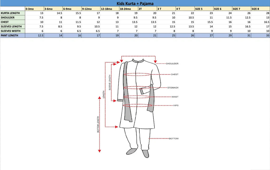 * If you want to mix and match the kurta and/or pajama, please send us a note and we will change it for you.