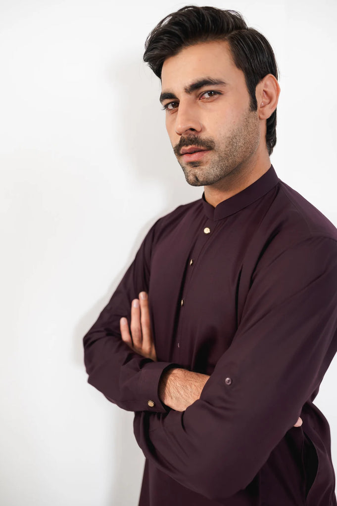Our Plum Classic Kurta for Men brings sophistication to your clothing collection through its design made for style-oriented people who value comfort. This kurta provides a smooth and lightweight experience because it was made with premium-quality breathable fabric. The deep plum color creates a sophisticated appearance which fits weddings, festivals, formal events along with casual settings.